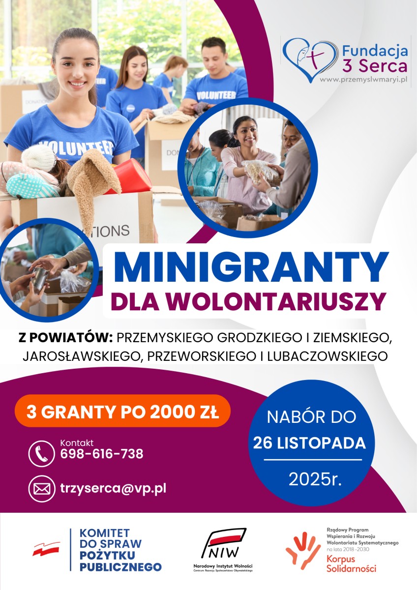 Fundacja 3 Serca ogłasza nabór wniosków do Konkursu na Minigranty na Inicjatywy Wolontariackie – edycja 2025.
